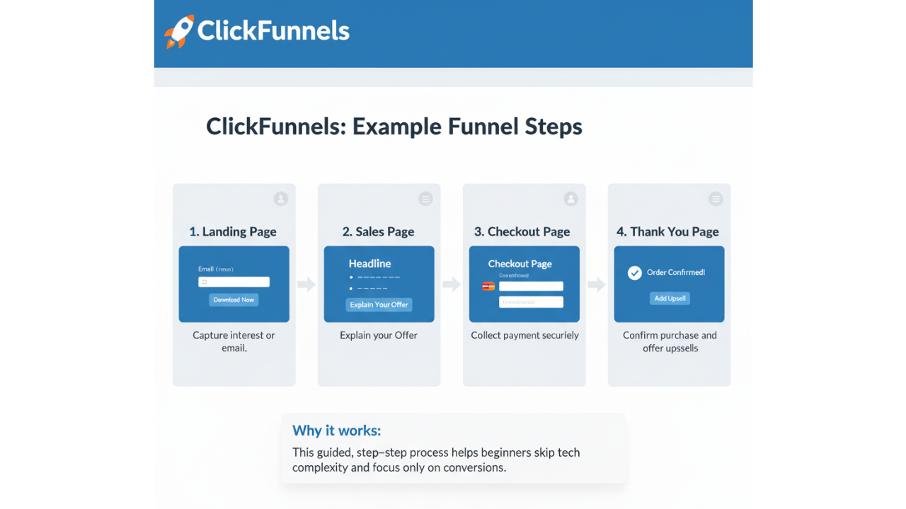 This simple funnel replaces complex website setups. That’s why beginners love it — and why ClickFunnels has become a top choice for affiliate marketers, course creators, and small businesses.