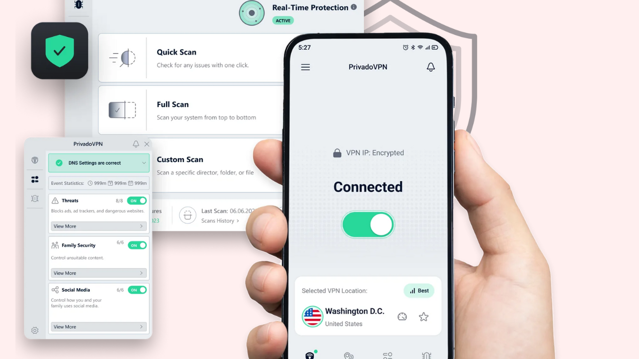 Secure Features: Kill switch, ad blocker, 256-bit encryption.