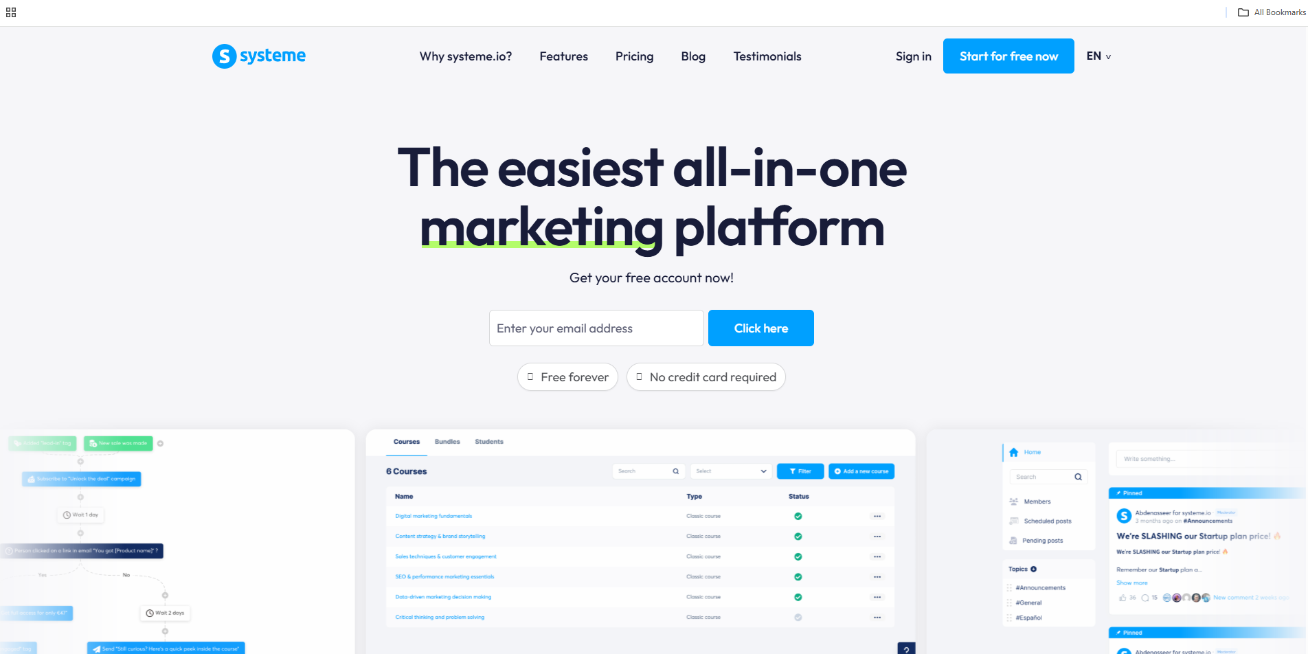 Systeme.io takes everything — funnels, email, automation, courses, affiliates — and puts it into one affordable, beginner-friendly platform.