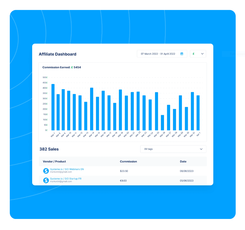 Scale your reach without lifting a finger. Systeme.io tracks your affiliates, sales, and payouts automatically.