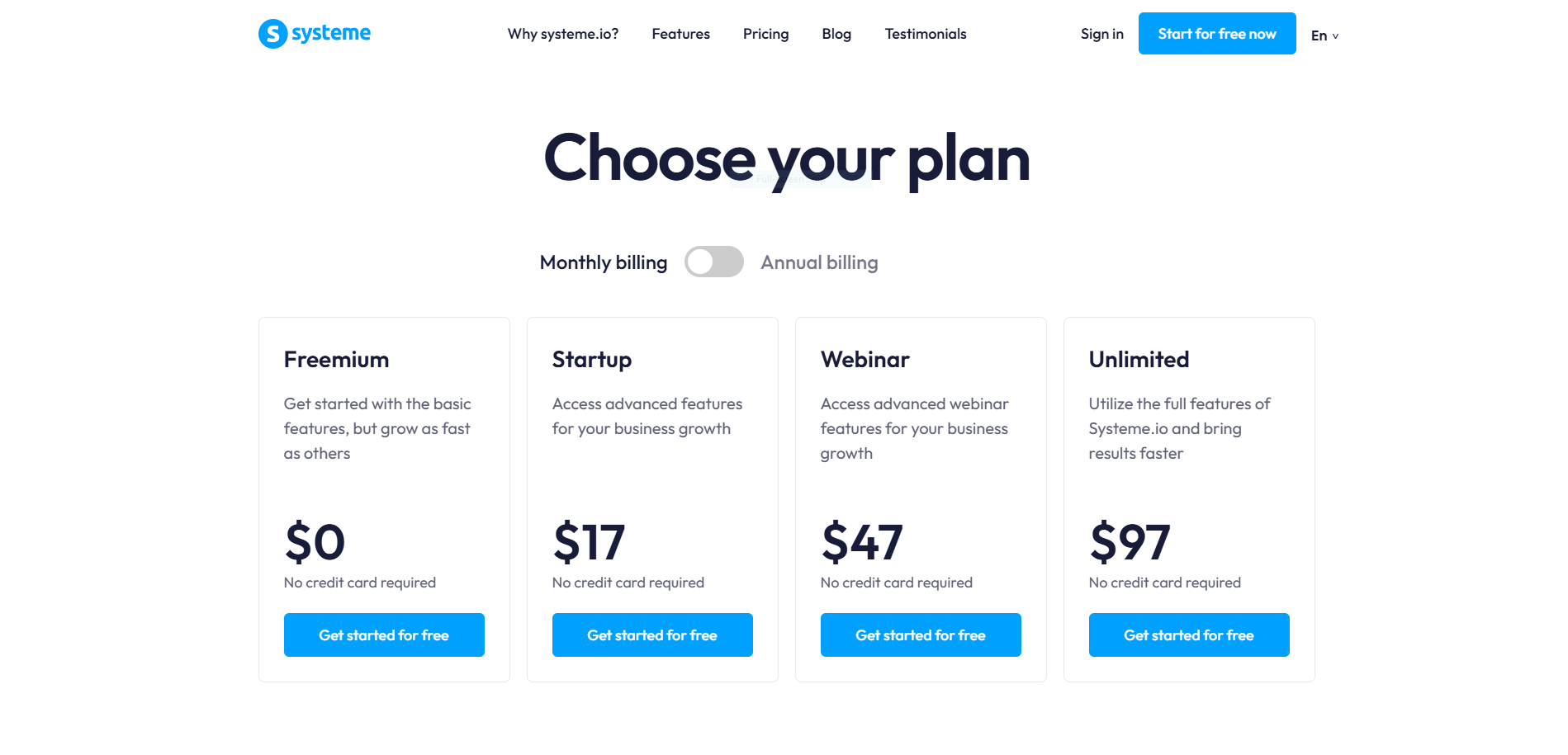 Systeme.io pricing is one of its biggest advantages. There’s even a free plan.